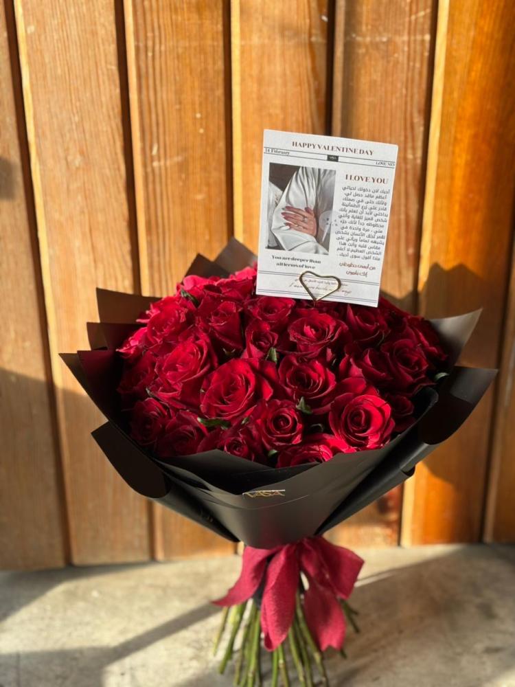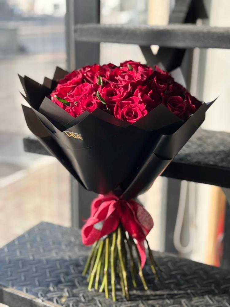 بوكيه احمر يحتوي على ٣٥ وردة روز
