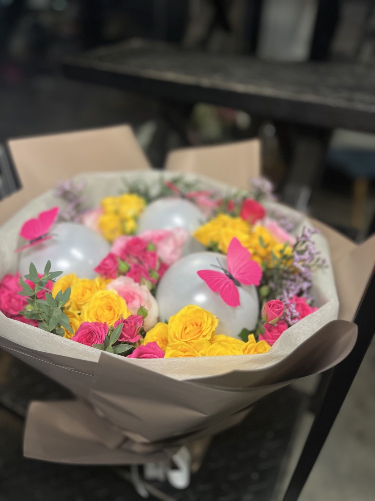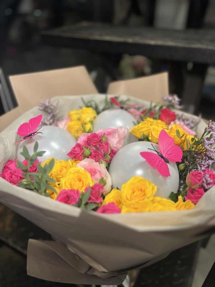 بترفلاي روز بوكيه (اصفر و وردي)