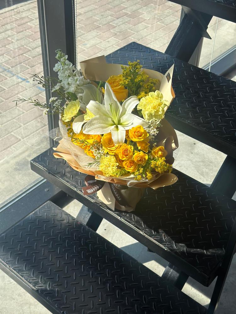 ملاحظة: قد تختلف بعض اصناف الورد بحسب الموسم وتوفرها مع المحافظه على الشكل العام للباقة.