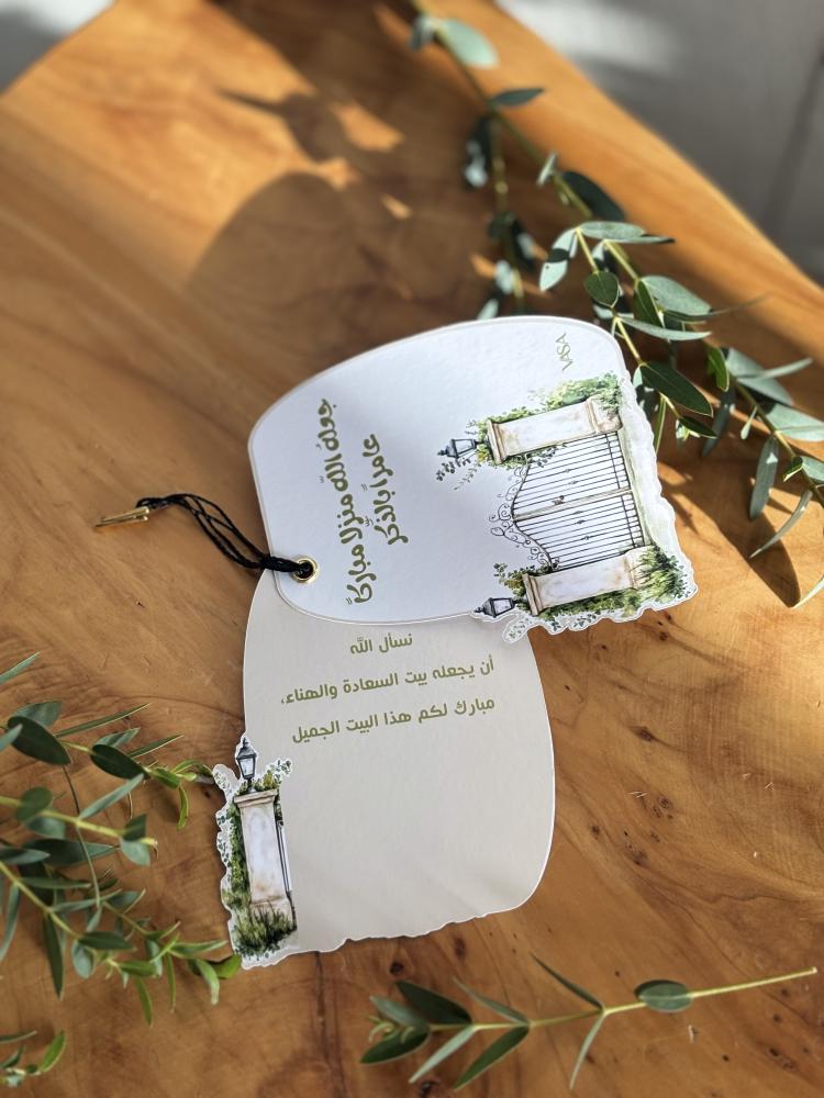 كرت ( جعلة الله منزلاً مباركاً ) مع أمكانيه تغير العبارة او اضافة اسم