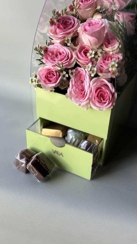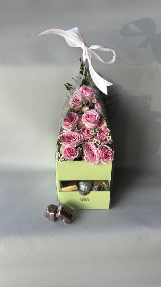 Baby Rose, Eucalyptus, Limonium, Garden Chocolate 8 pieces