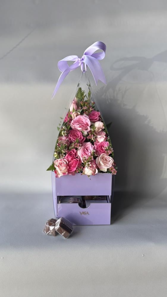 Baby Rose, Eucalyptus, Limonium, Garden Chocolate 8 pieces